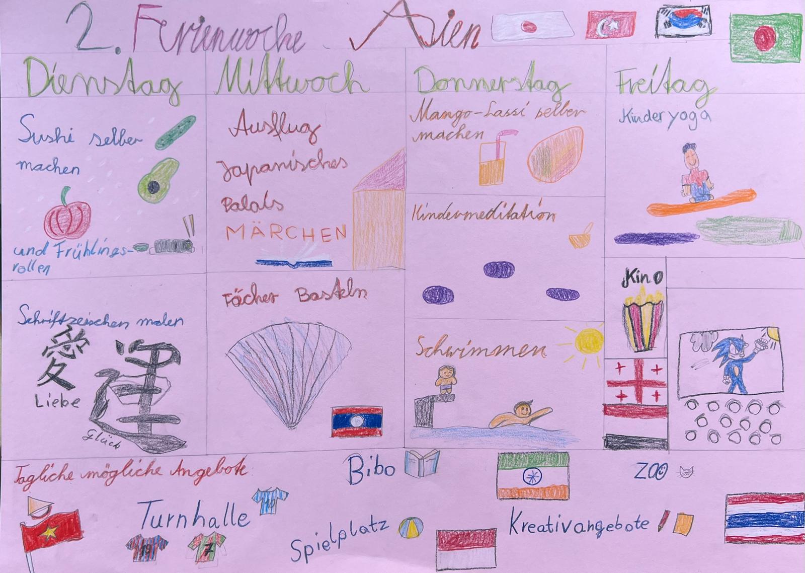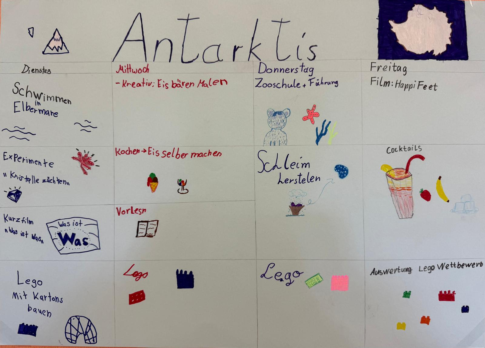 Jeden Montag werden die Ideen und Vorschläge der anwesenden Kinder in unserem Ferienkoffer für die gemeinsame Wochengestaltung gesammelt. Einige Angebote werden schon im voraus vom Ferienteam geplant und gebucht.