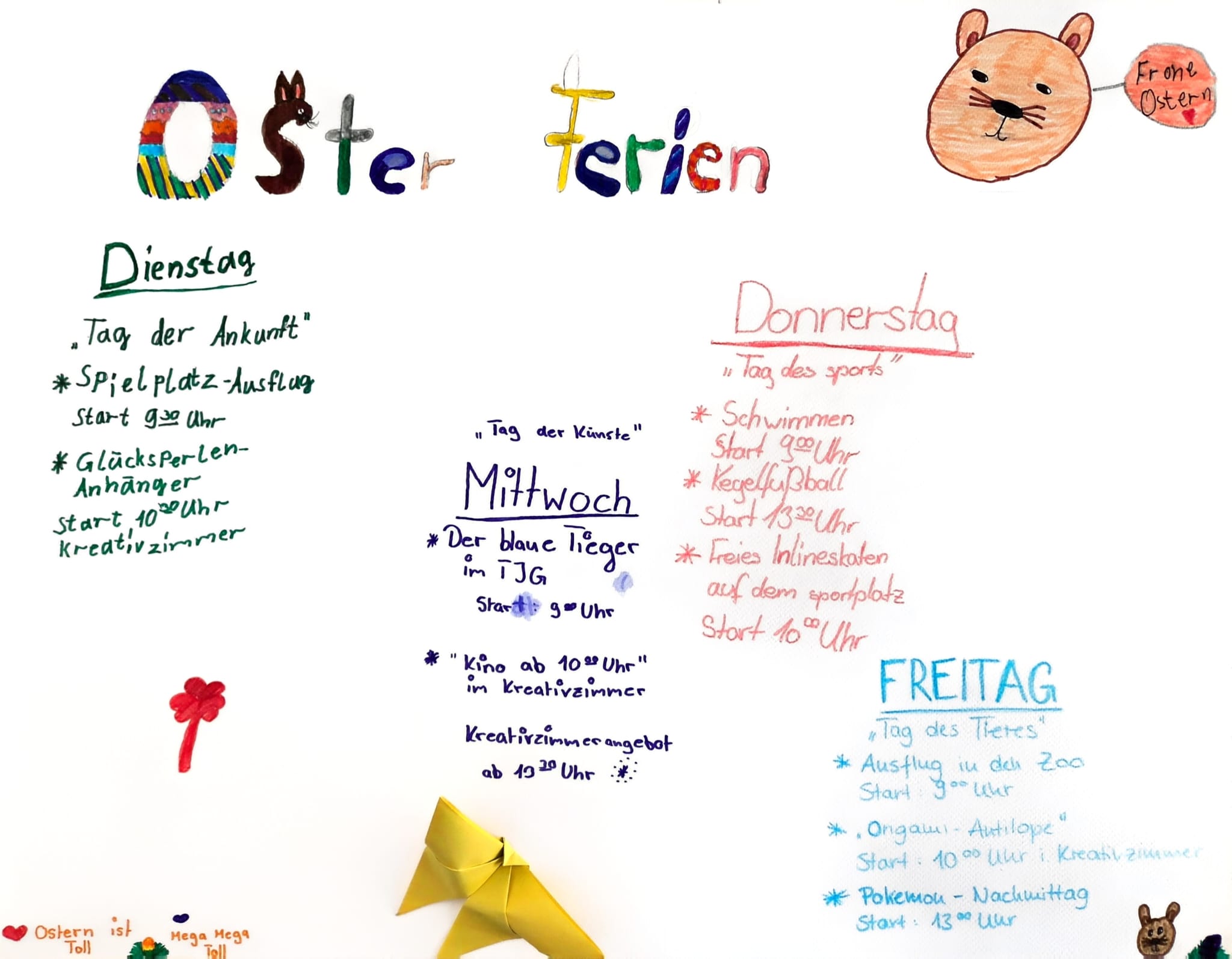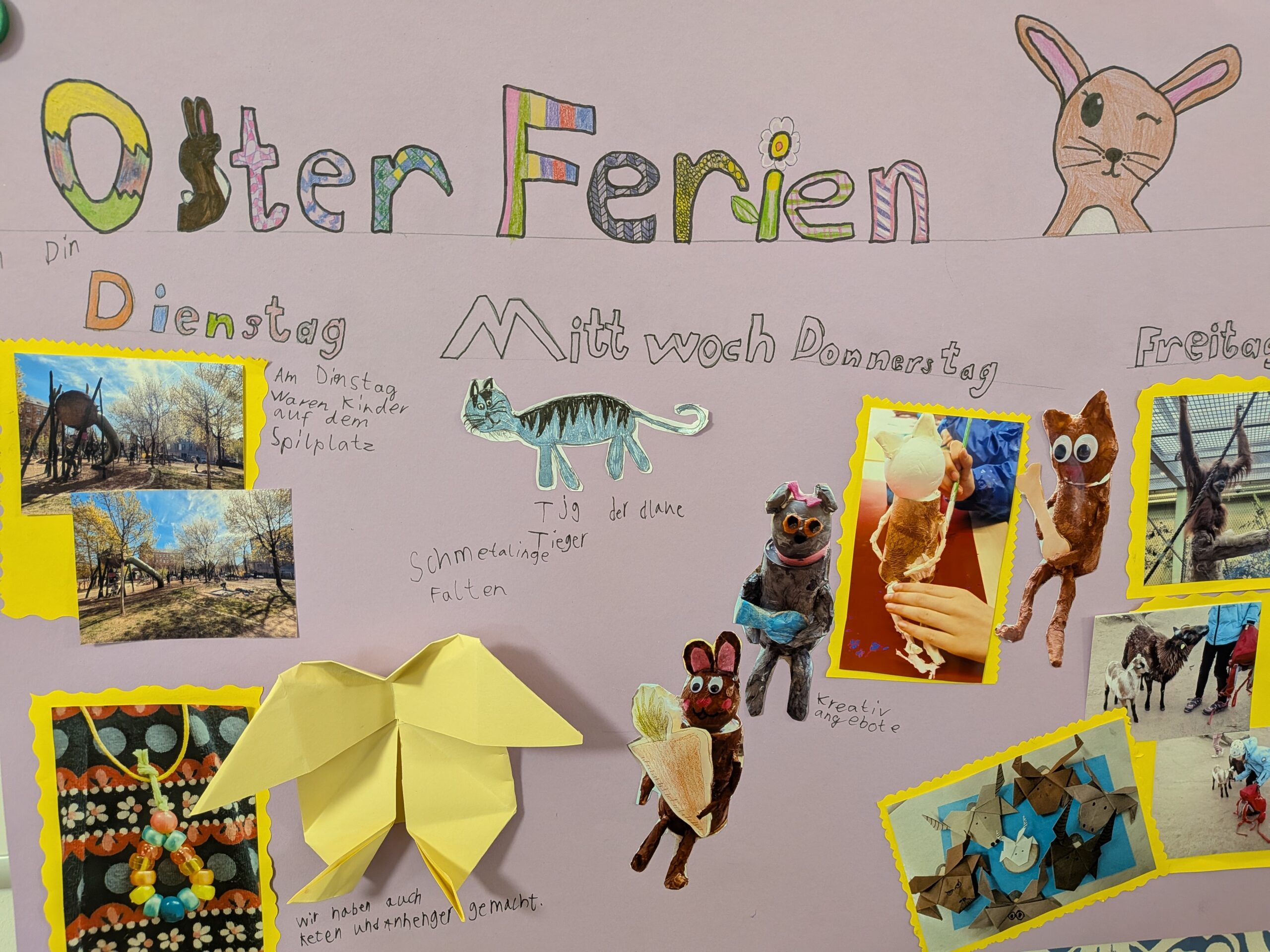 Nach dem Mittagessen wird das Ferienprogramm gemeinsam mit den Kindern vorgestellt und besprochen. An einem Aushang und auf unserer Internetseite ist das Wochenprogramm für alle Kinder und Eltern ersichtlich. Die Kinder haben die Möglichkeit sich bis zum Vortag für ein Angebot anzumelden.